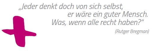 Ein Blick in Rutger Bregmans Buch „Im Grunde gut" macht Hoffnung. Er skizziert „eine neue Geschichte der Menschheit", in der der Mensch gut ist, und zeigt dass eine nachhaltige Transformation unserer Gesellschaft möglich ist – in dem wir das Gute und Positive stärken.