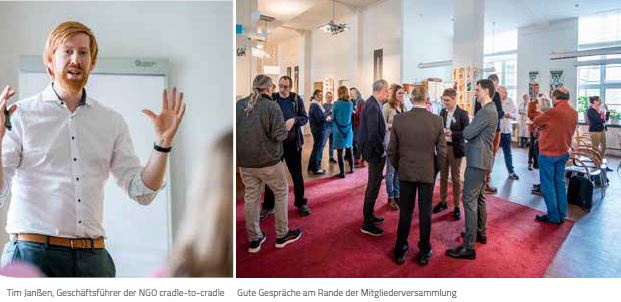 Das Highlight des Tages war dann der Impulsvortrag von Tim Janßen, Geschäftsführer der NGO cradle-to-cradle. Er zog mit sehr inspirierenden Worten und lebendigen Beispielen alle Zuhörer:innen in seinen Bann und machte deutlich, wie sehr wir Nachhaltigkeit neu denken müssen.