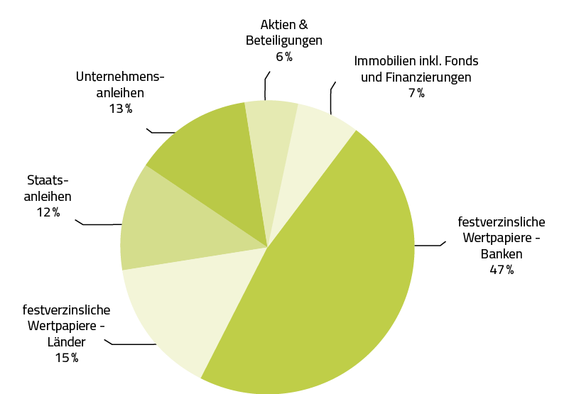 Die höheren Zinsen ermöglichten uns auch in diesem Jahr, einige interessante Green und Social Bonds zu erwerben. So haben wir beispielsweise einen Green Bond von Tennet zum Ausbau des Stromnetzes und vom dänischen Energie-Versorger Ørsted A/S erworben, sowie Social Bonds der NRWBank und der Deutschen Kredit-bank (DKB), die im Schwerpunkt sozialen Wohnungsbau finanzieren. Des Weiteren haben wir in eine Unternehmensanleihe der Deutschen Bahn und einen Hypo-thekennamenspfandbrief der DZ Hyp AG investiert.